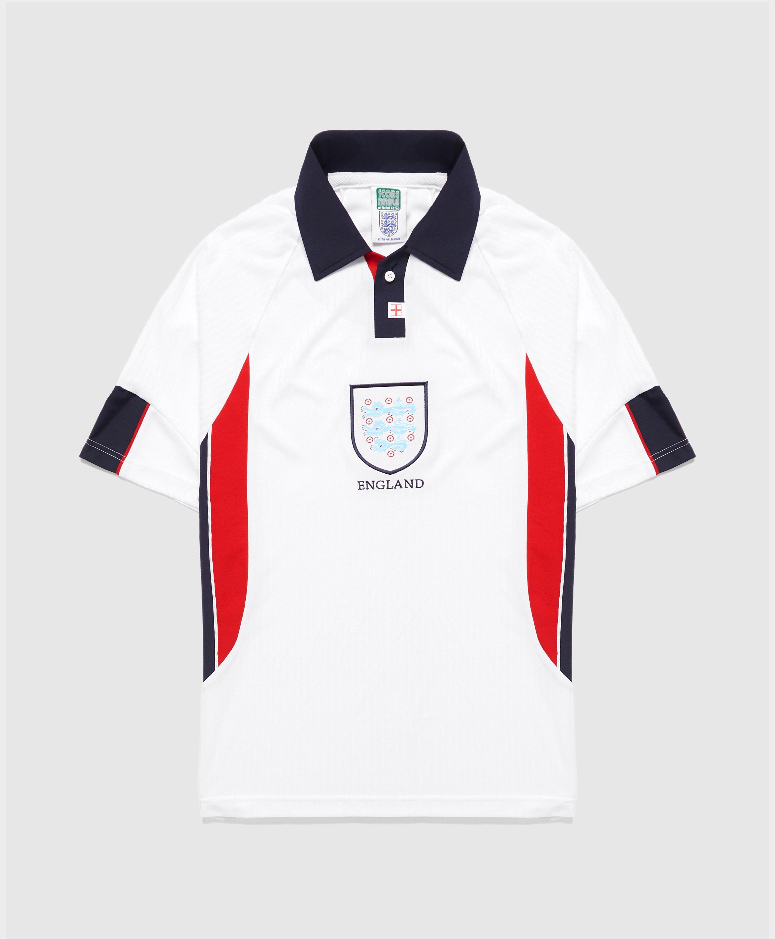 Quick view score draw england '90 world cup home retro shirt. Sort by position name price colour date added default. Quick view score draw england '82 home world cup retro shirt. Score draw england away gascoigne 8 retro shirt euro 96 (retro flex printing) excl. Score draw england 96 home jersey mens the mens score draw england 96 home jersey offers a perfect retro look with the classic 96 shirt design, featuring a lightweight construction with a v neck collar and short sleeves for comfort, completed with the classic three lions logo to the centre chest.